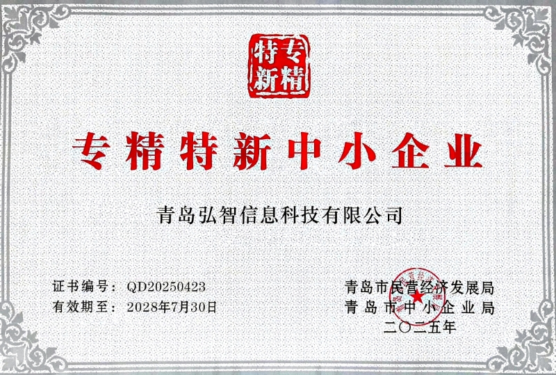 08-21 青島弘智信息科技有限公司再度榮膺"專精特新中小企業(yè)"稱號——以創(chuàng)新驅(qū)動發(fā)展,以專業(yè)鑄就卓越